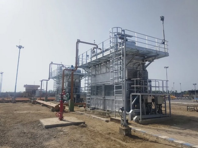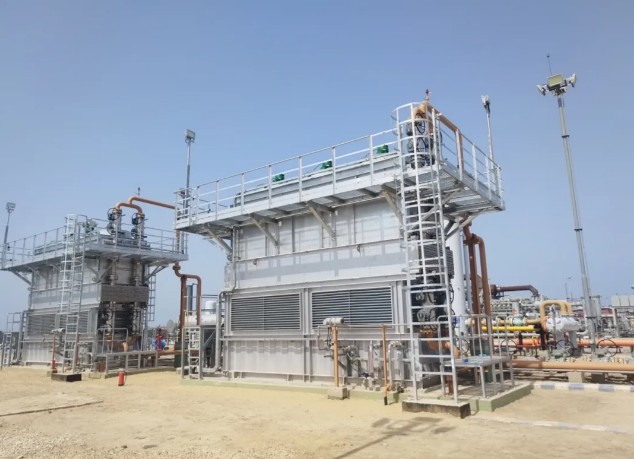 项目现场夏季极端高温超过50℃,对冷却设备的稳定性提出极高要求。杰瑞天然气研发团队针对高盐、高湿环境,对换热管材质、喷淋水系统及风机结构进行了针对性强化,确保机组在高温、高腐蚀工况下长期可靠运行。出厂前,设备顺利通过专业测试,冷却效率、噪音值、振动幅度等关键指标均优于行业标准。
